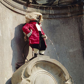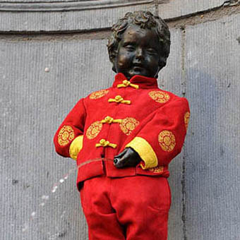 由于受歡迎,各方都喜歡送這個小男孩衣服,第一件來自法王路易十五?,F(xiàn)在,各國元首出訪比利時送他一套本國傳