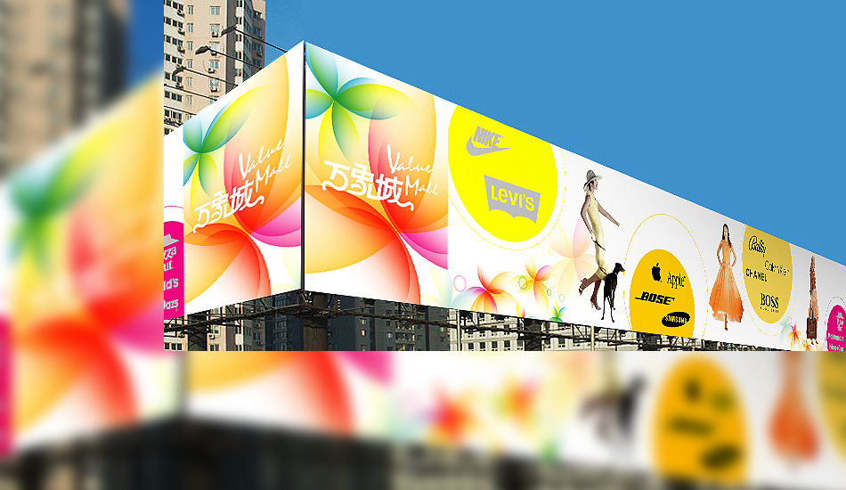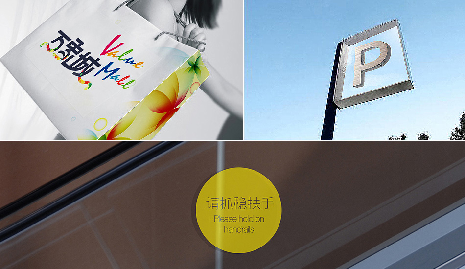 作為視覺標(biāo)識的核心元素,我們盡量保持其平穩(wěn)大氣的基調(diào);2、為呼應(yīng)購物廣場時尚活力、大平臺的訴求,