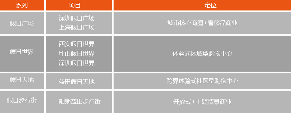 2016年是益田商業(yè)的爆發(fā)年,公司在陽朔、西安、深圳、上海四大區(qū)域布局五大項(xiàng)目,產(chǎn)品線細(xì)分定位如下: